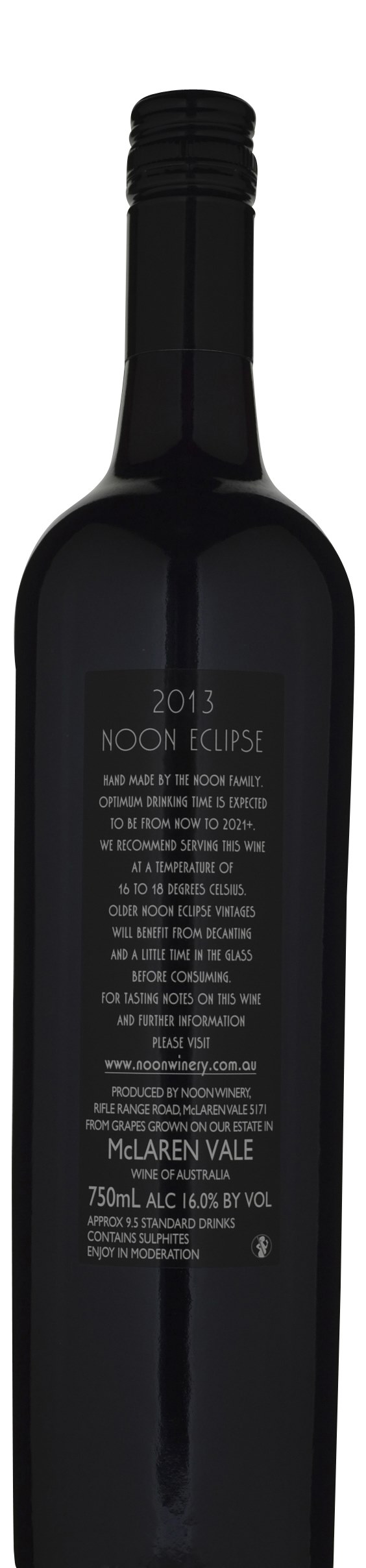 Medium garnet/purple, the 2013 Eclipse Proprietary Red McLaren Vale/Langhorne Creek is scented of cherry coulis, raspberry pie and red currant jelly with nuances of cinnamon stick, toast, mandarin peel, potpourri and white pepper. Full-bodied, very elegant and packed with red berry, spice and earthy layers, the tannins are velvety and the acidity provides plenty of freshness, especially on the long finish. Drink 2017 - 2030.