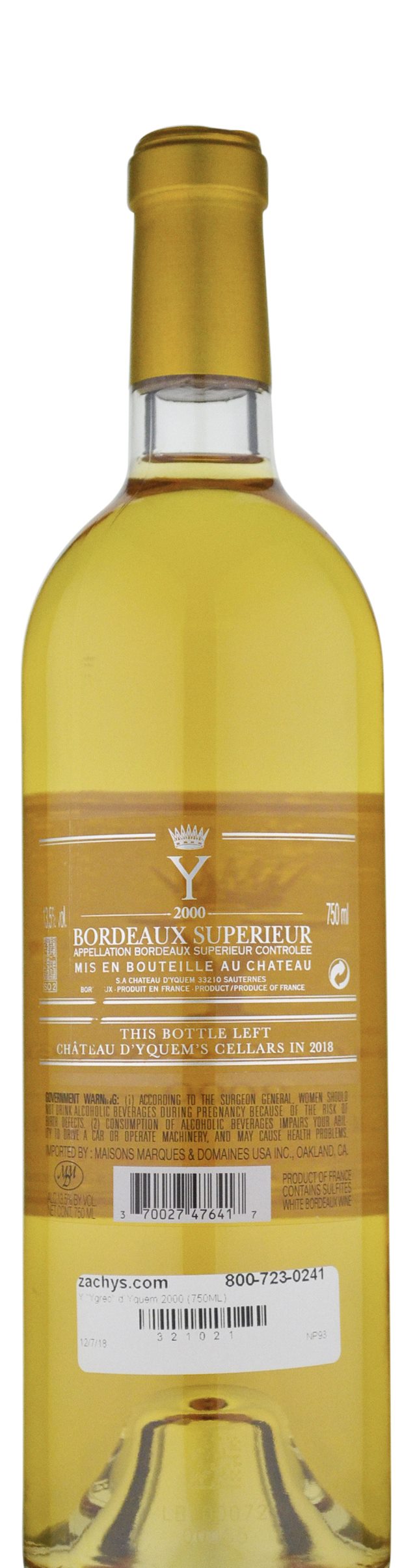 Chateau d'Yquem "Y" Bordeaux Blanc Bordeaux 2000 Gifts » from $490.00 | Aus-wide