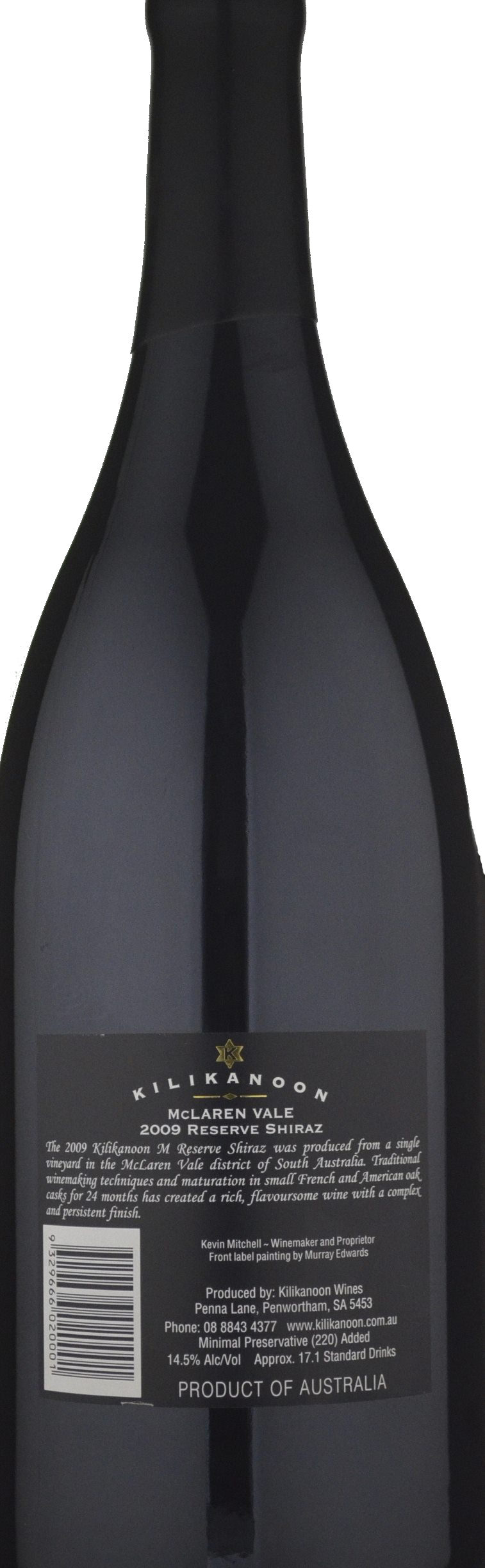 The 2009 M Reserve Shiraz has a very deep purple-black color and aromas of fresh black plums, black cherries and blackberries over toast, black pepper, dried Provence herbs, cumin seed and tree bark. Firmly structured with a high level of chewy tannins and racy acid, it has concentrated, vibrant berry and earth flavors on the full bodied palate, finishing long. It should drink best 2014 to 2022+.